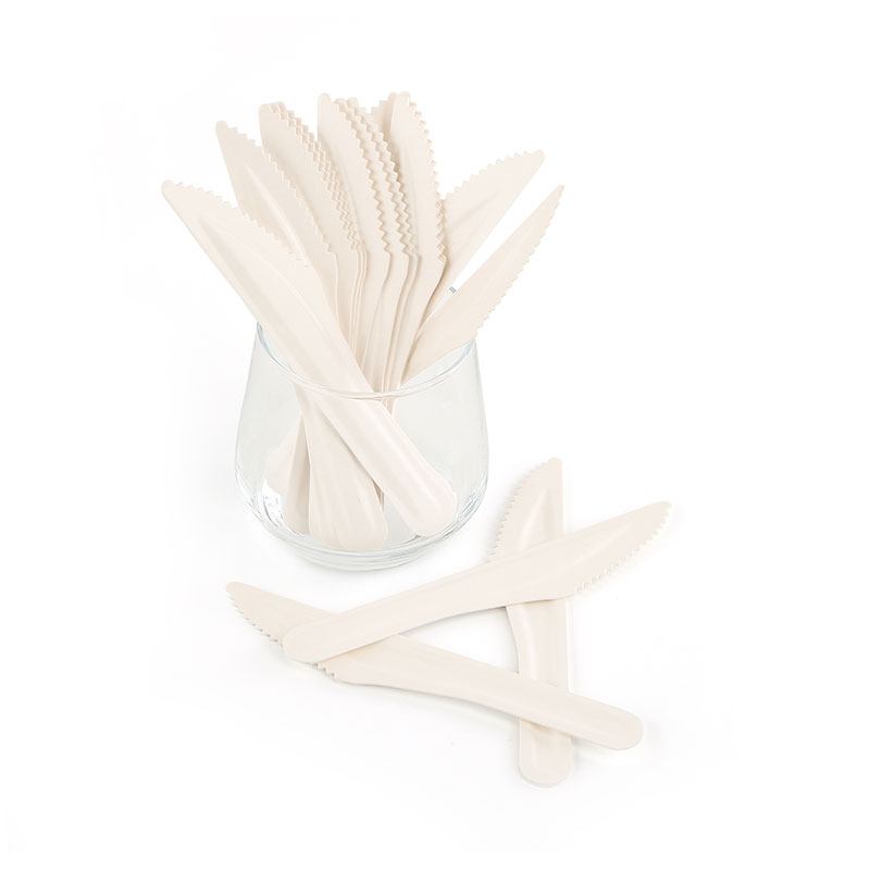 Soomth natural color eco-friendly and biodegradable disposable paper knife,suitable for hot or cold food.Multiple laywers of paper hot pressed into nice and durable shapes.Ergonomic design makes it easy to use. Paper knives can be customized in different shapes as well as a variety of personalized colors, Huanqiu's award-winning quality, made using plastic-free, food-grade white kraft paper. Designed for industrial composting and recyclable.